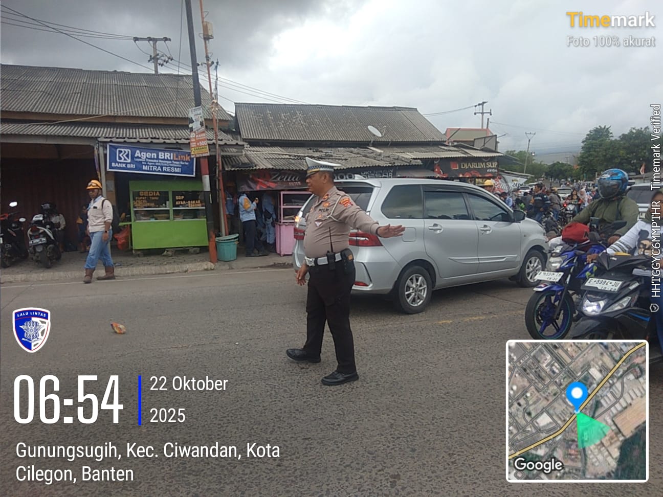 Cilegon – Berikan Pelayanan Pagi Kepada Masyarakat Personil Polsek Ciwandan Polres Cilegon Polda Banten melaksanakan pengaturan di titik kepadatan Arus Lalu-lintas Yang Ada Di daerah Hukum Polsek Ciwandan, Rabu (22/10/2025).