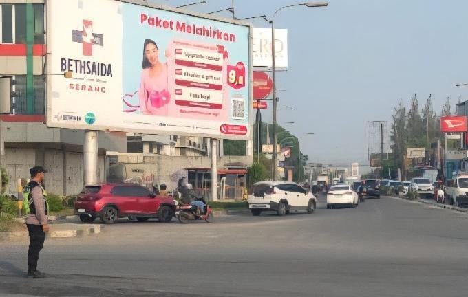Cilegon - Pelayanan Kepada Warga Masyarakat dan Guna menciptakan situasi lalu lintas yang aman, tertib dan lancar, Personel Polsek Cibeber Polres Cilegon Polda Banten secara rutin melaksanakan pengaturan lalu lintas di sekitar Traffic Light PCI kota Cilegon.