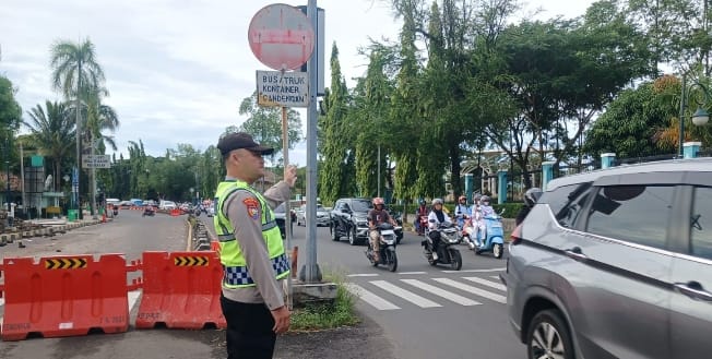 Selain melakukan pengaturan lalu lintas, personel Polsek Purwakarta juga memberikan himbauan kepada pengguna jalan agar selalu mematuhi peraturan lalu lintas dan mengutamakan keselamatan.