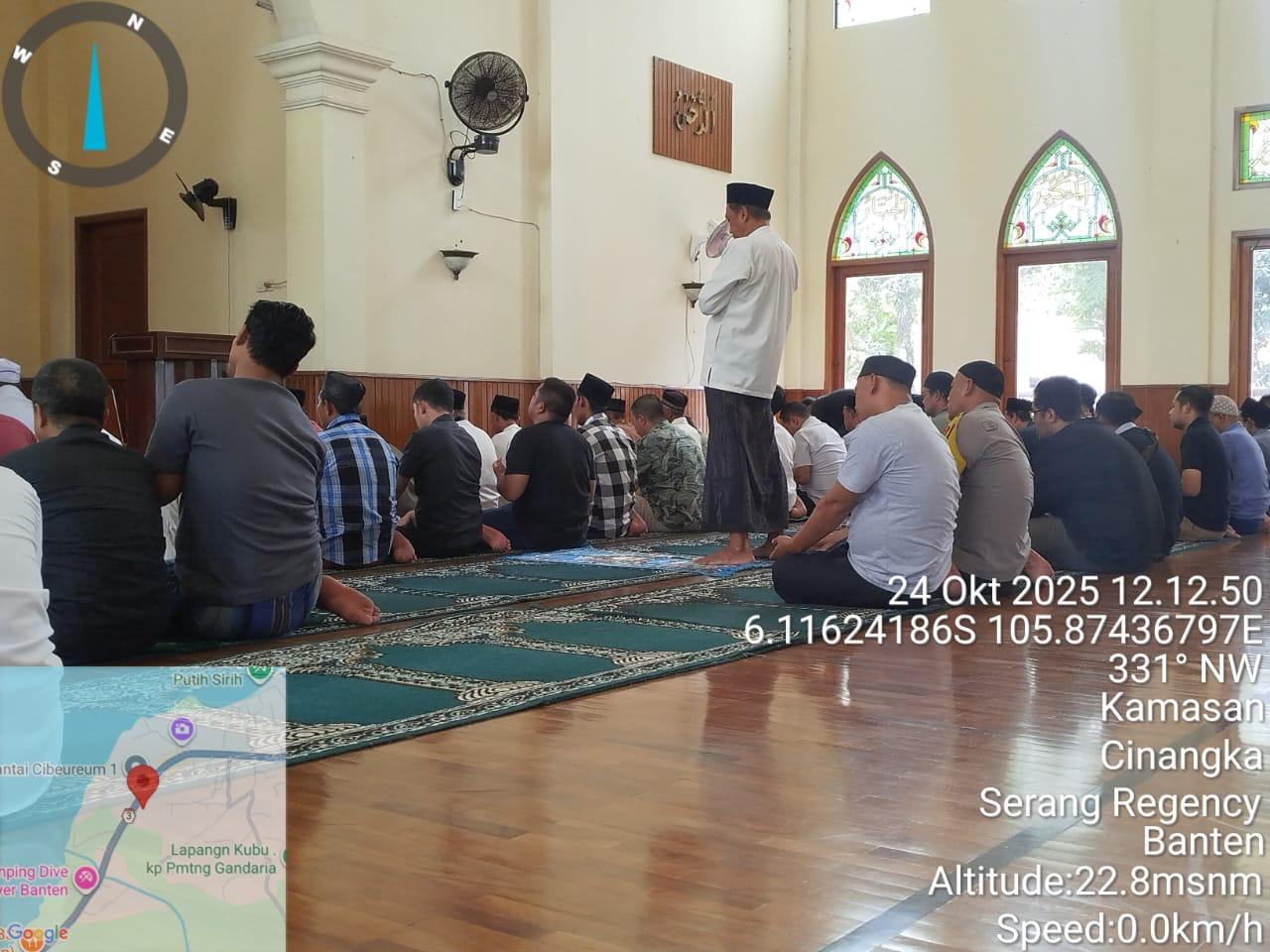*POLRES CILEGON* - Kapolsek Cinangka Polres Cilegon Polda Banten dan Jajaran melaksanakan giat Juma't keliling dalam rangka silaturahmi menjalin kemitaraan dan menjaga Harkamtibmas di Desa Binaannya sebagai bentuk mendukung Program Quick Wins Presisi Polri, Jumat (24/10/2025).