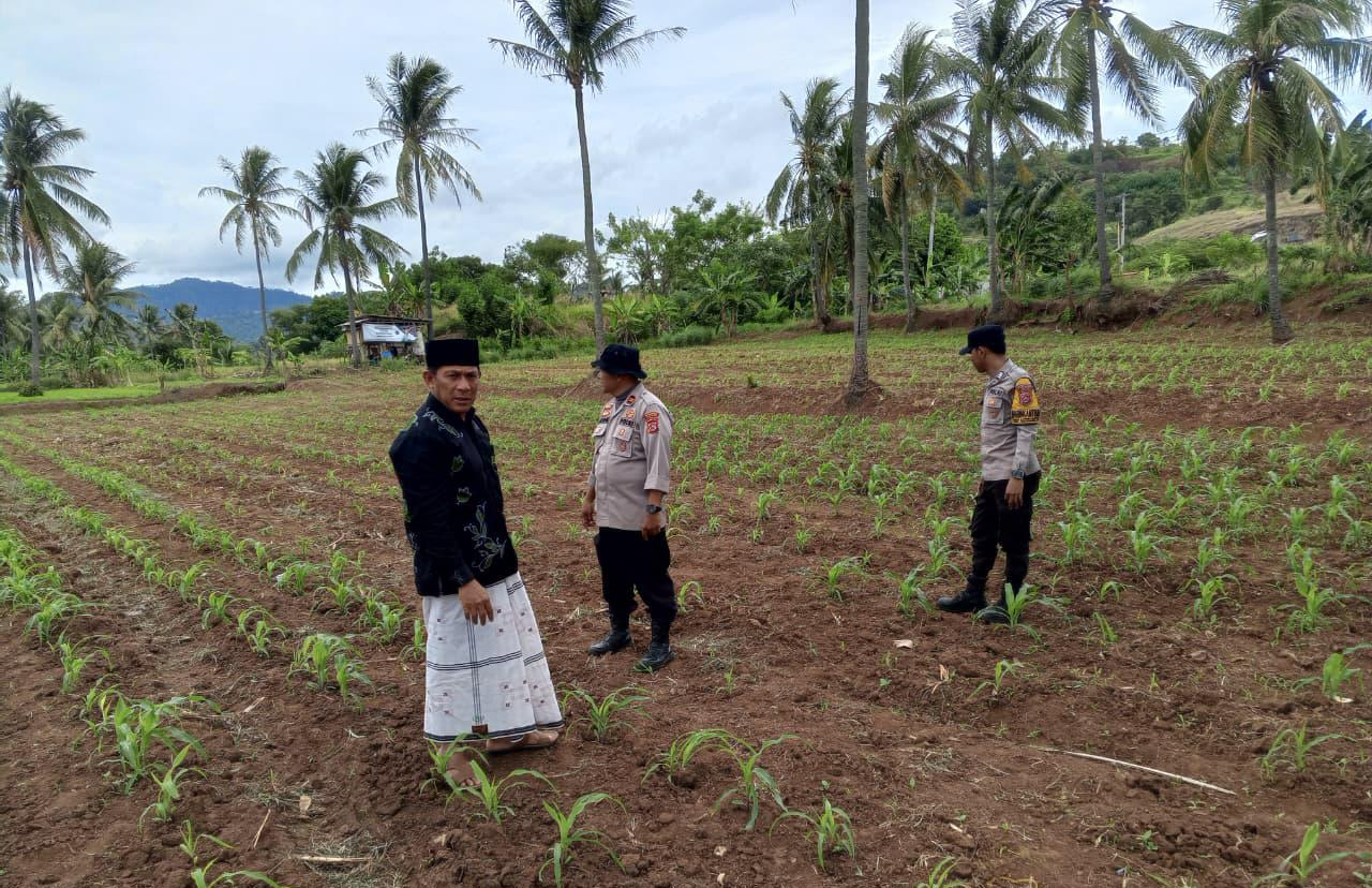 Kanit Binmas dan Bhabinkamtibmas Bersama Petani Laksanakan Monitoring dan Perawatan Lahan Jagung Pipil di Desa Binaanya