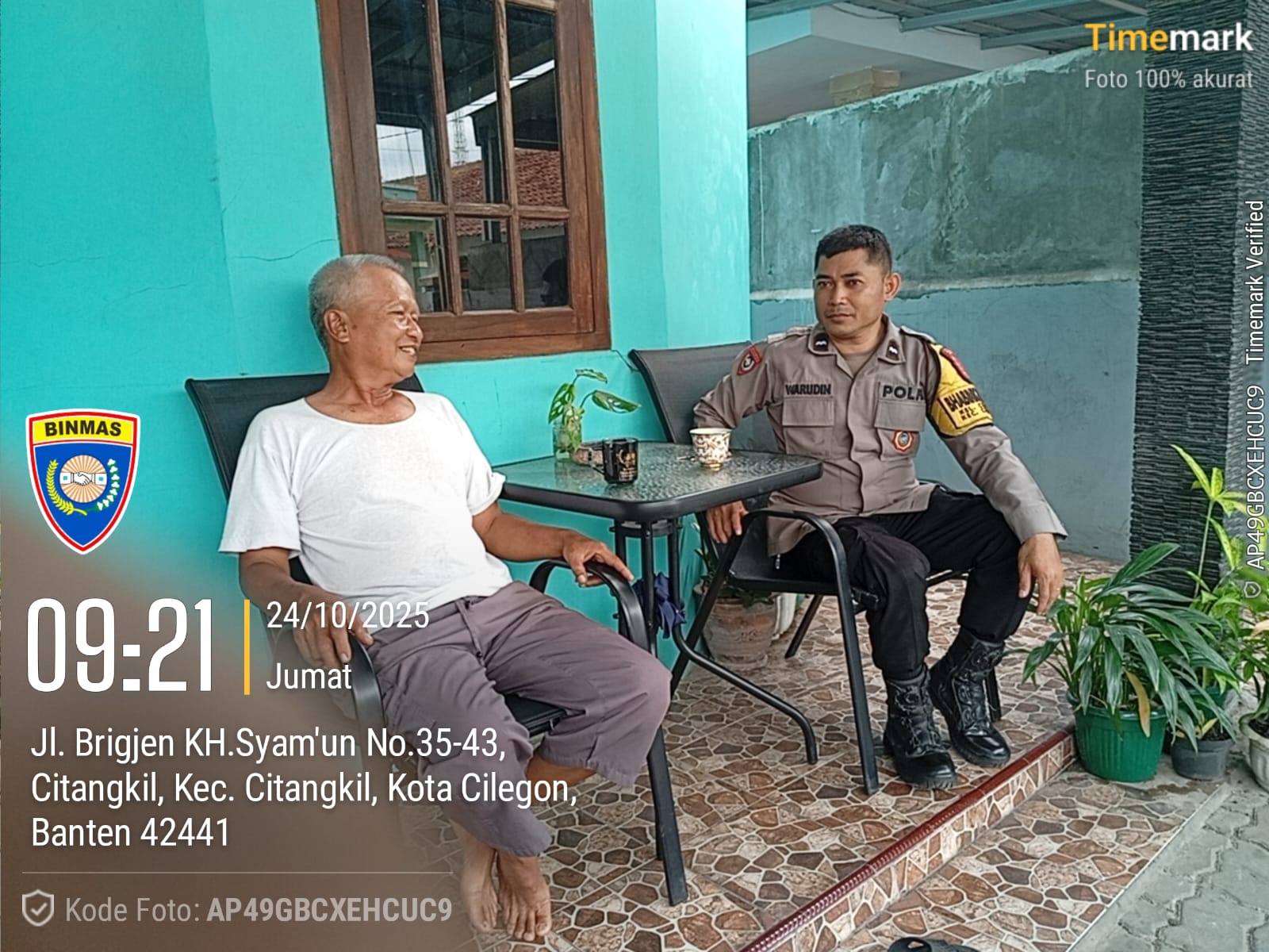 Cilegon - Bhabinkamtibmas Polsek Ciwandan Polres Cilegon Polda Banten  Melaksanakan kegiatan Dialogis/Sambang Door to Door Sistem (DDS) Di daerah binaannya serta memberikan Pesan-pesan Kamtibmas Guna Menciptakan situasi Harkamtibmas yang Aman dan nyaman, Sabtu (25/10/2025).