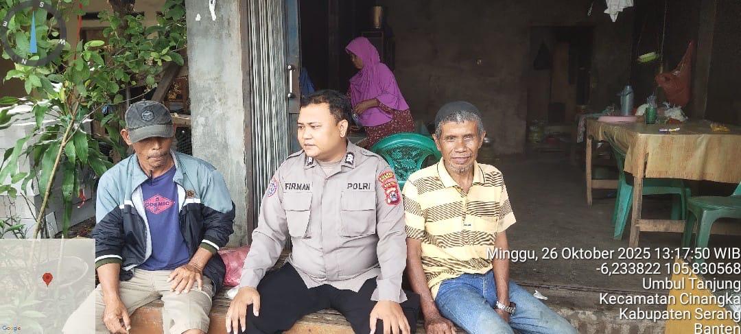*Polres Cilegon* - Guna Menekan Gangguan Kamtibmas (GKTM) ,Bhabinkamtibmas Polsek Cinangka Polres Cilegon Polda Banten melakukan kegiatan Sambang di daerah hukum Polsek Cinangka, Minggu (26/10/2025).