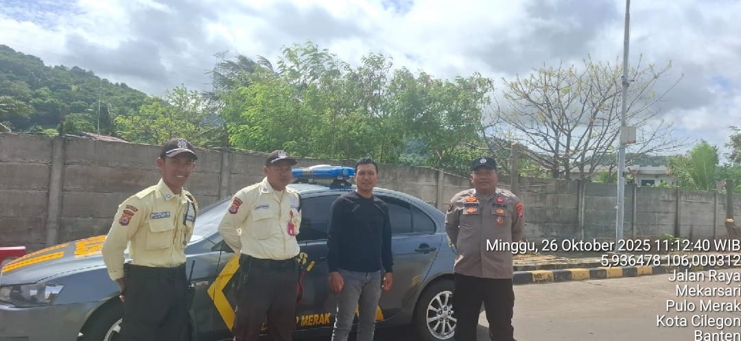 Cilegon - Personel Polsek Kskp Merak Polres Cilegon Polda Banten melaksanakan sambang dan patroli kawasan pelabuhan merak dalam rangka menjaga Harkamtibmas di Kawasan Pelabuhan Merak, Minggu (26/10/2025).