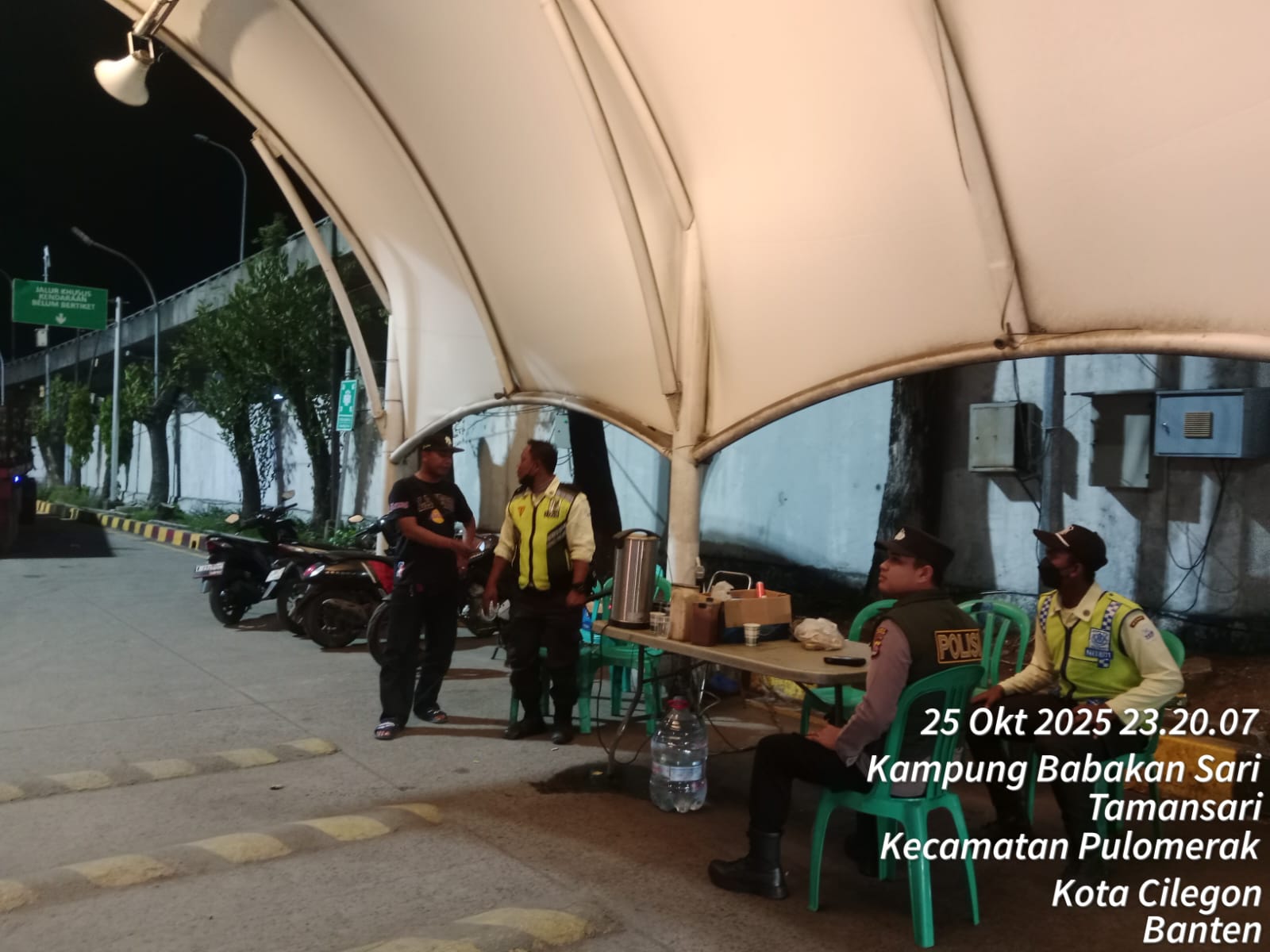 Cilegon - Personel Polsek Kskp Merak Polres Cilegon Polda Banten melaksanakan sambang dan patroli kawasan pelabuhan merak dalam rangka menjaga Harkamtibmas di Kawasan Pelabuhan Merak, Minggu (26/10/2025).