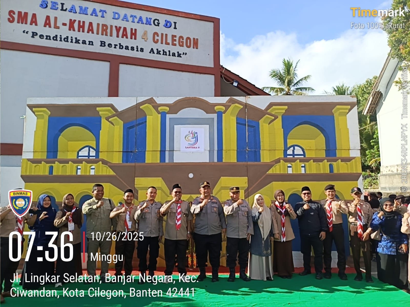 Cilegon - Kasat Binmas IPTU Muhidin dan Wakapolsek Ciwandan AKP Uup M. Ma'ruf Serta Bhabinkamtibmas Polsek Ciwandan menghadiri kegiatan pembukaan Lomba Tangkas Pramuka Se-Banten Tahun 2025 di SMA Al-Khairiyah 4 Cilegon, Minggu (26/10/2025).