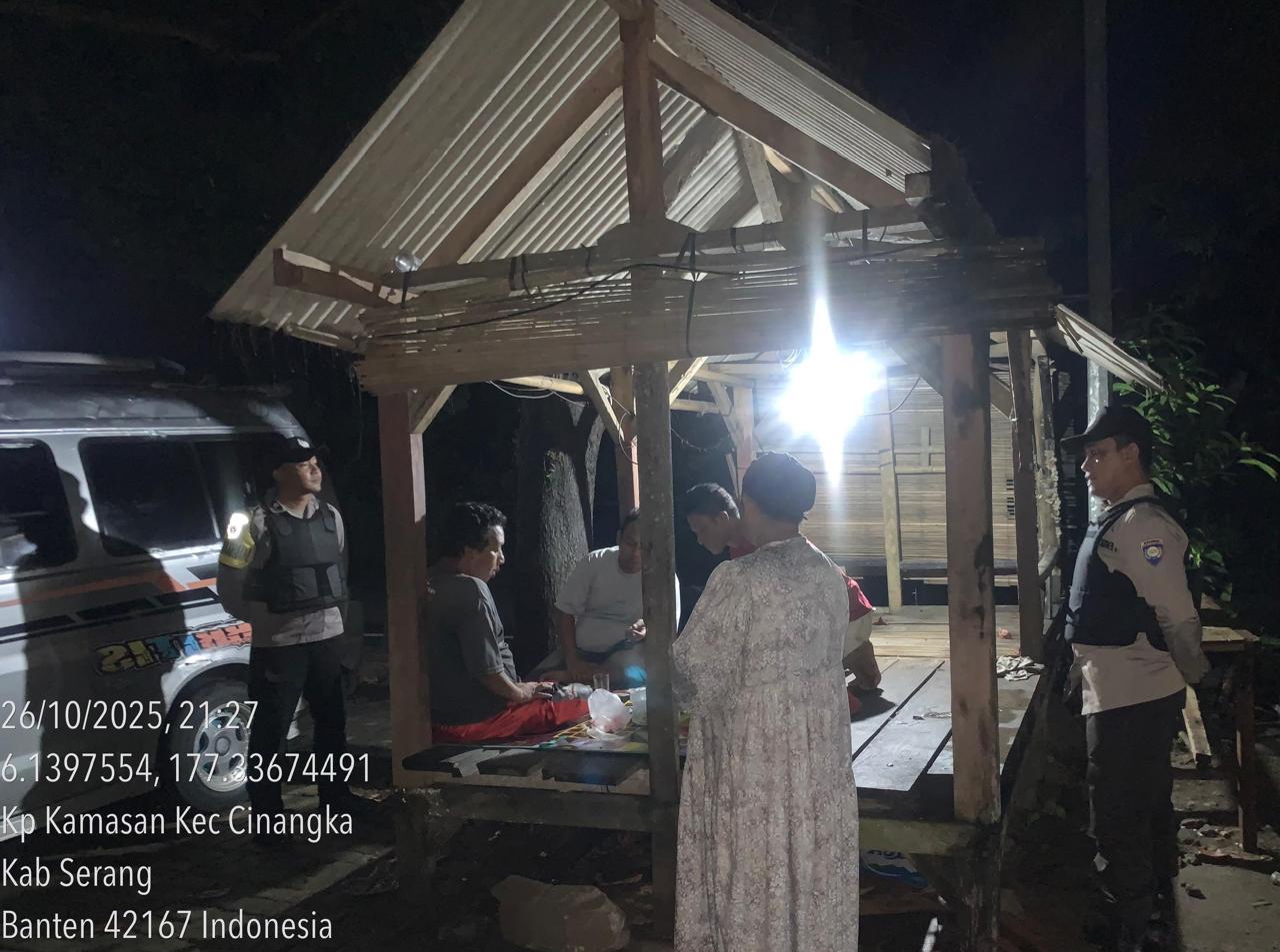 *Cilegon* – Dalam Rangka Pencegahan Kejahatan Jalanan dan Memelihara situasi keamanan dan menjaga serta memberikan rasa aman dan nyaman di masyarakat,Salah satu upaya untuk mewujudkan hal tersebut sebagaimana yang dilakukan oleh Personil Polsek Cinangka Polres Cilegon Polda Banten melaksanakan giat patroli blue light malam hari hingga menjelang pagi, Senin (27/10/2025).