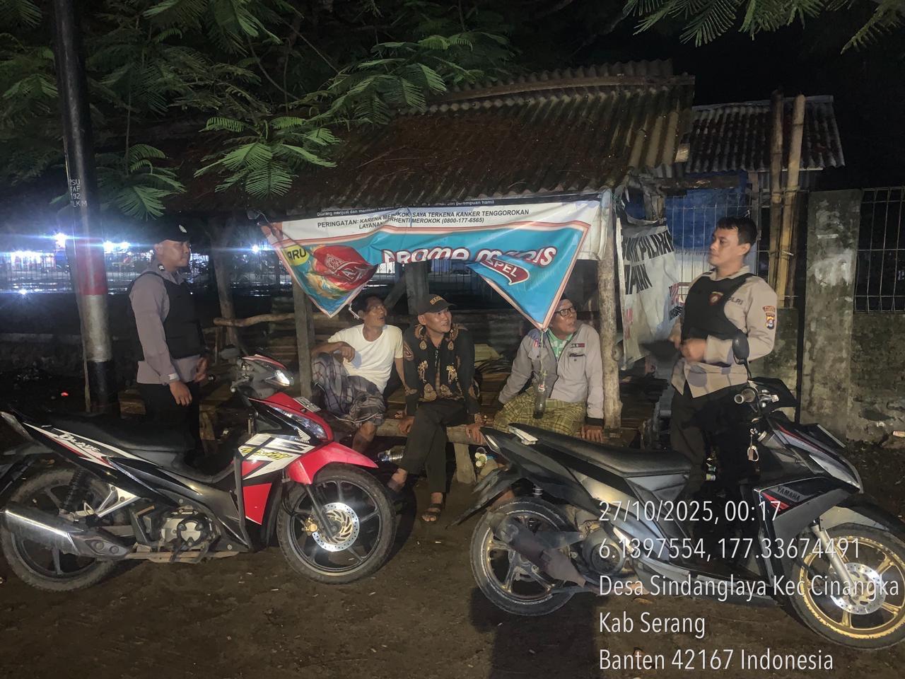 *Cilegon* – Dalam Rangka Pencegahan Kejahatan Jalanan dan Memelihara situasi keamanan dan menjaga serta memberikan rasa aman dan nyaman di masyarakat,Salah satu upaya untuk mewujudkan hal tersebut sebagaimana yang dilakukan oleh Personil Polsek Cinangka Polres Cilegon Polda Banten melaksanakan giat patroli blue light malam hari hingga menjelang pagi, Senin (27/10/2025).