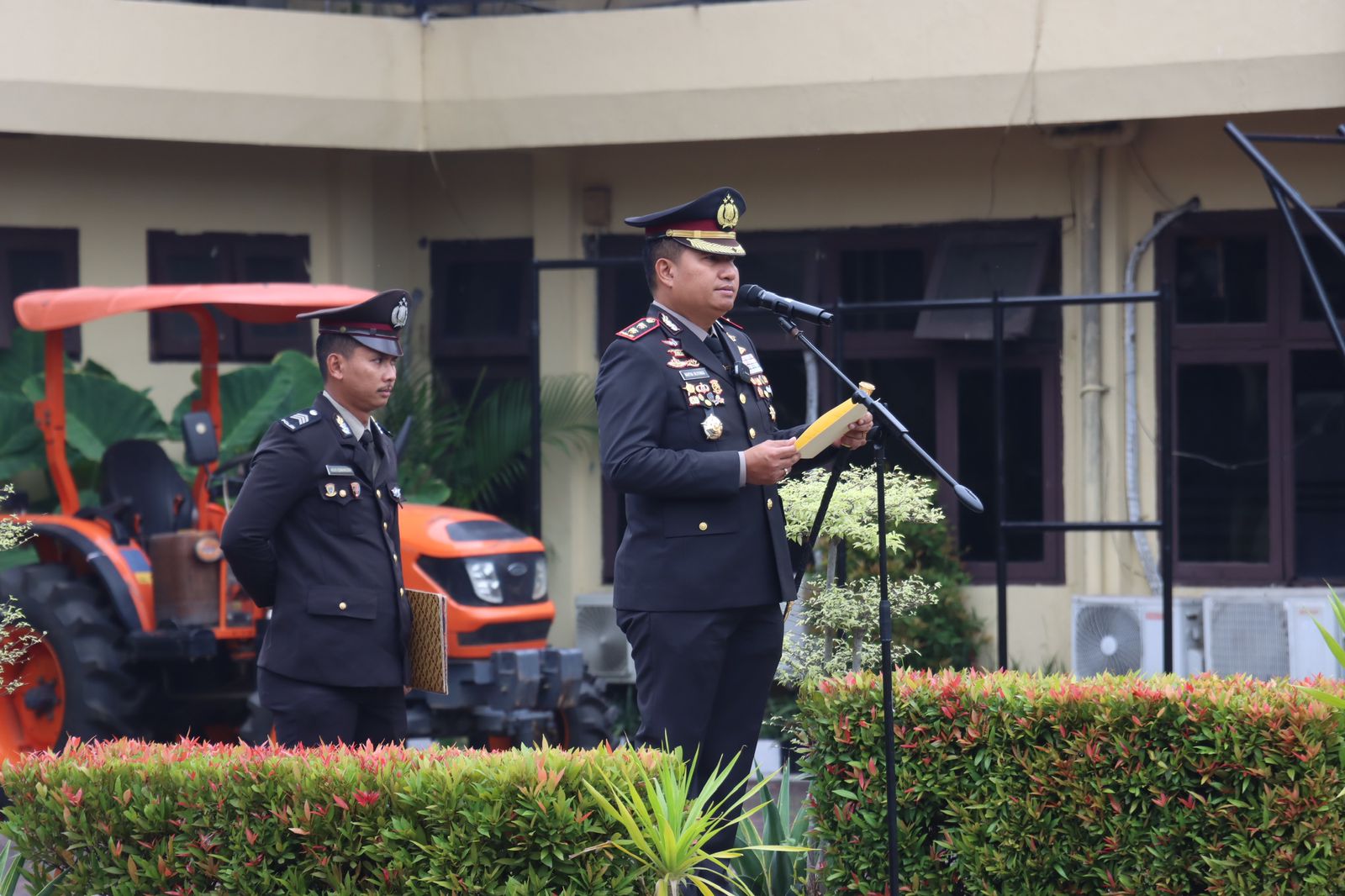 Dalam upacara yang dimulai pukul 07.00 WIB tersebut, hadir para pejabat utama Polres Cilegon, Kapolsek jajaran, personel Polri, ASN, serta perwakilan Polwan. Susunan petugas upacara turut diisi oleh para personel terbaik Polres Cilegon, antara lain Perwira Upacara AKP Suryanto, S.E., Komandan Upacara IPDA Kusumah, S.Sos, dan pembaca doa PENDA Ahmad Fatulloh.