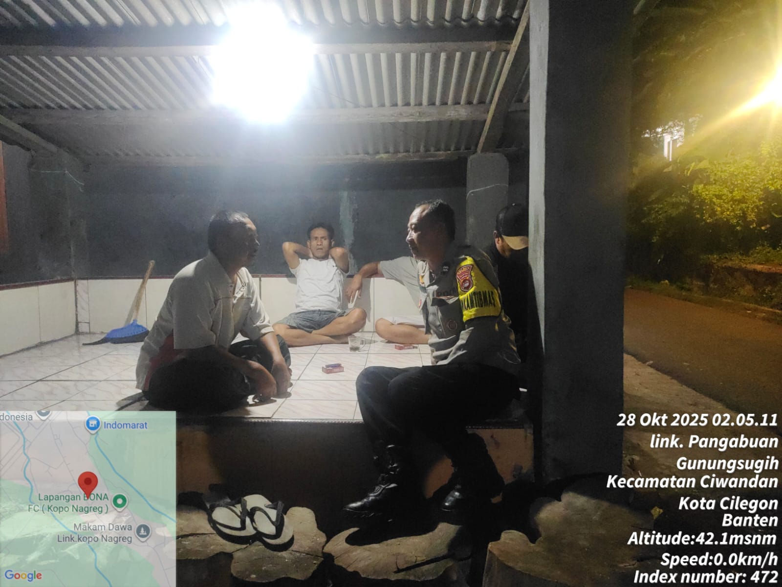 Personil Polsek Ciwandan Datangi Pos Ronda Siskamling, Pantau Warga Jaga Harkamtibmas.