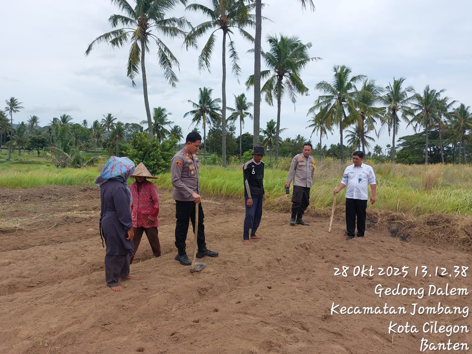 Cilegon - Melaksanakan program pemerintah, penanaman jagung dalam program ketahanan pangan, personil Polsek Kp Merak Polres Cilegon Polda Banten melaksanakan kegiatan peninjauan serta monitoring lokasi yang nantinya akan ditanami bibit jagung unggul di Desa Mangkunegara Kecamatan Bojonegara, Kabupaten Serang, Selasa (28/10/2025).