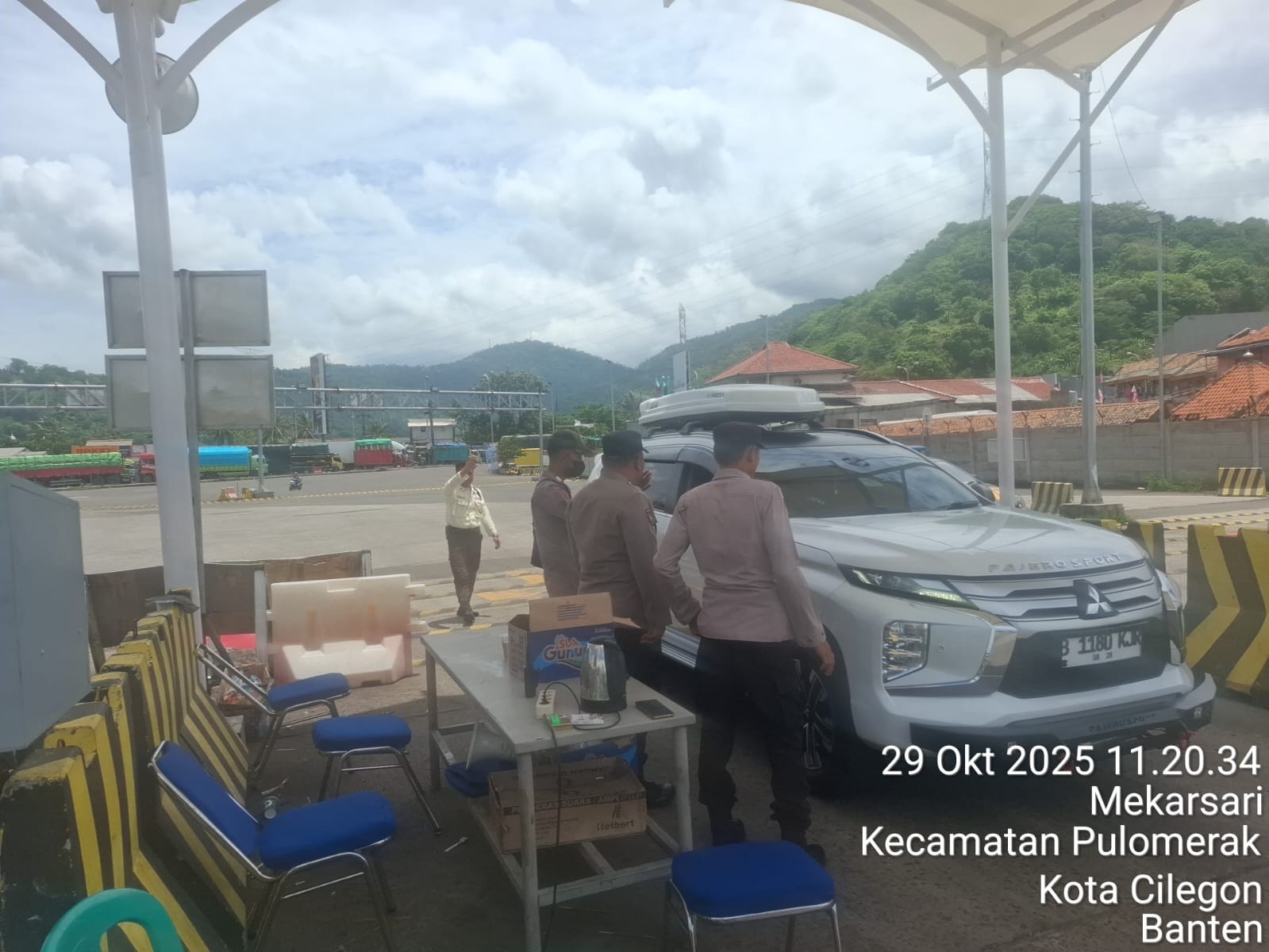 Cilegon - Personel Polsek Kskp Merak Polres Cilegon Polda Banten melaksanakan sambang dan patroli kawasan pelabuhan merak dalam rangka menjaga Harkamtibmas di Kawasan Pelabuhan Merak, Rabu (29/10/2025).