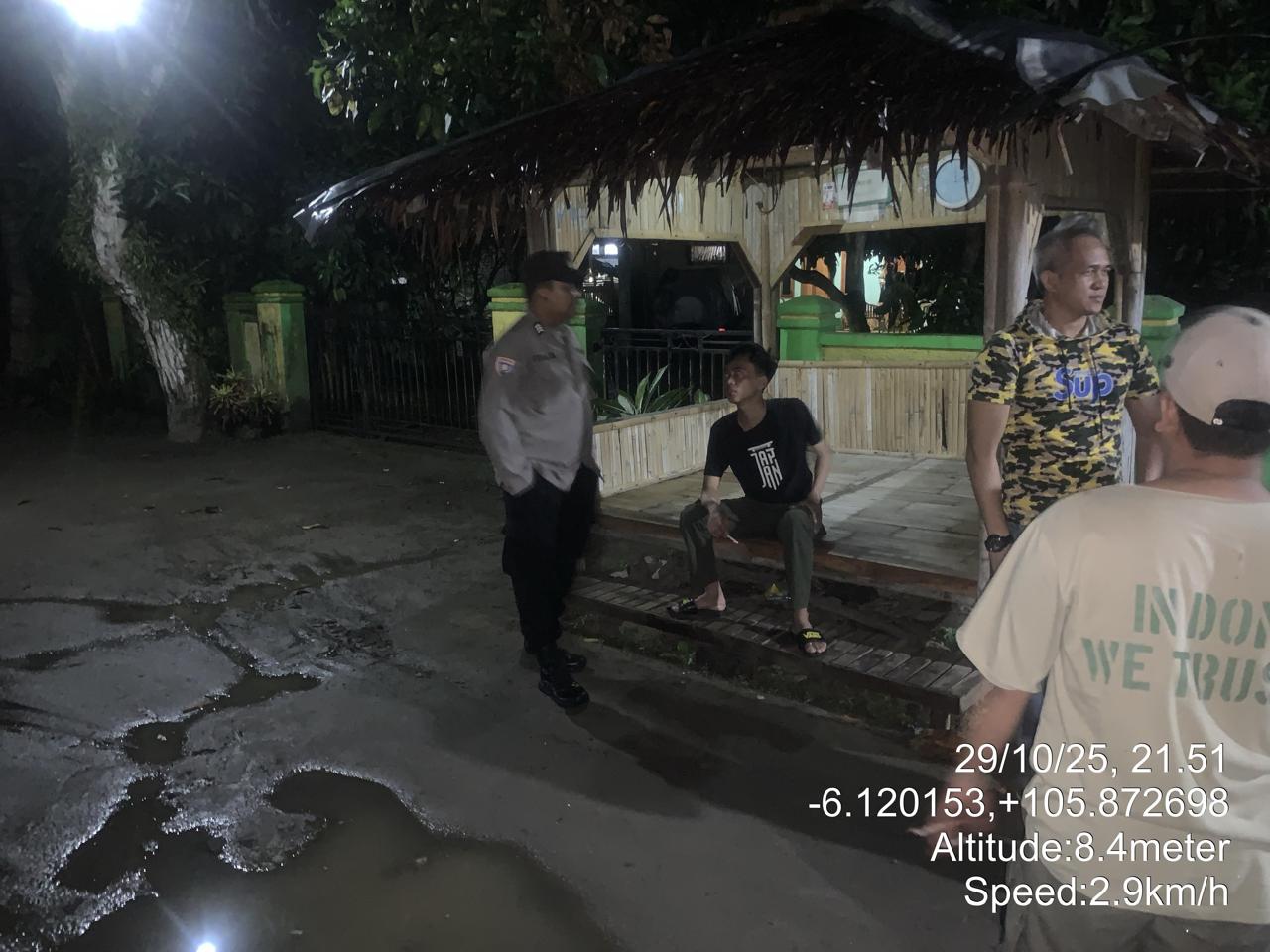 *Polres Cilegon* || Personil Bhabinkamtibmas Polsek Cinangka melaksanakan Program Komandan Wish Kapolda Banten RONDA SATKAMLING menyampaikan komunikasi dengan Petugas Siskamling agar berperan aktif dalam menciptakan Harkamtibmas yang aman dan Kondusif, Kamis (30/10/2025).