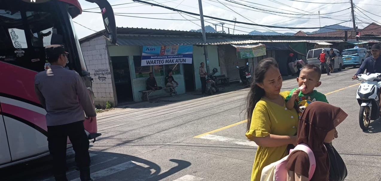Polsek Anyar Dalam Pengaturan Lalu Lintas di Jalur Anyar - Cinangka