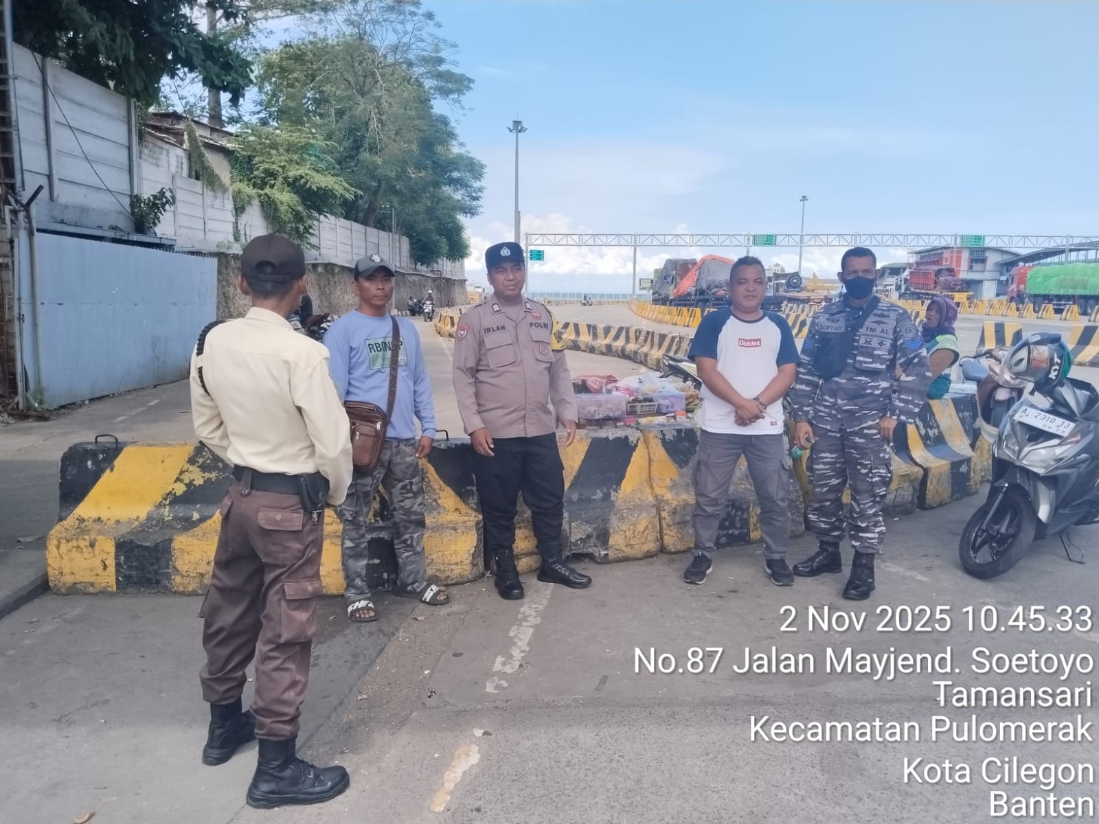 Cilegon - Personel Polsek Kskp Merak Polres Cilegon Polda Banten melaksanakan sambang dan patroli kawasan pelabuhan merak dalam rangka menjaga Harkamtibmas di Kawasan Pelabuhan Merak, Minggu (02/11/2025).