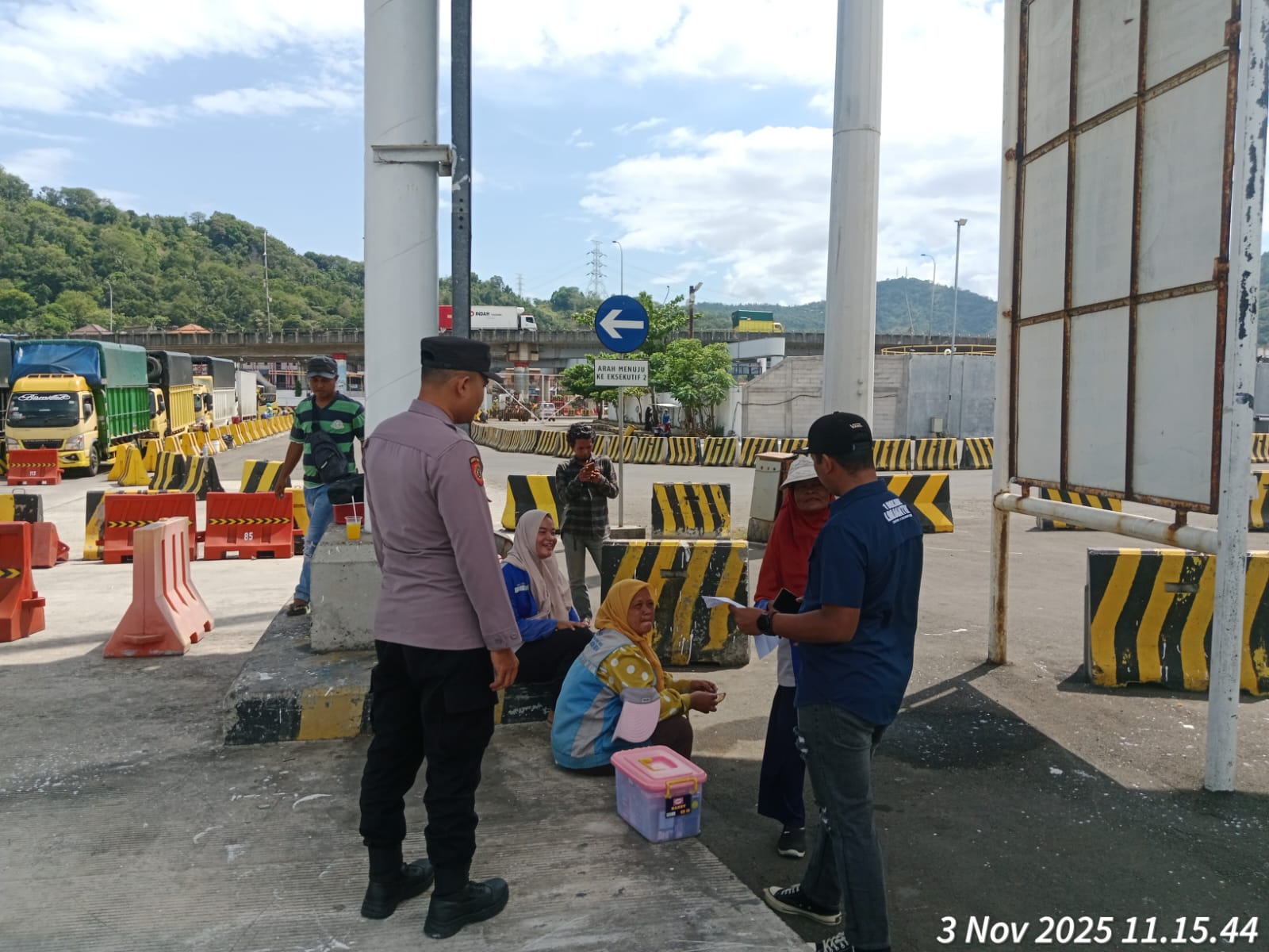 Cilegon - Personel Polsek Kskp Merak Polres Cilegon Polda Banten melaksanakan sambang dan patroli kawasan pelabuhan merak dalam rangka menjaga Harkamtibmas di Kawasan Pelabuhan Merak, Senin (03/11/2025).