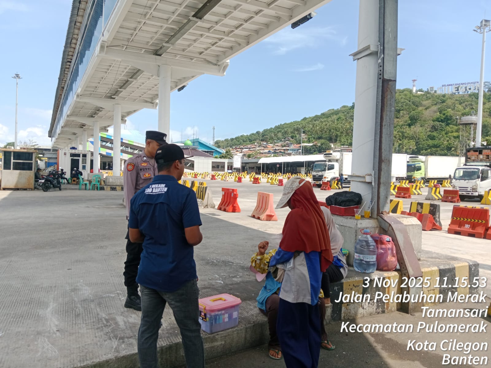 Cilegon - Personel Polsek Kskp Merak Polres Cilegon Polda Banten melaksanakan sambang dan patroli kawasan pelabuhan merak dalam rangka menjaga Harkamtibmas di Kawasan Pelabuhan Merak, Senin (03/11/2025).