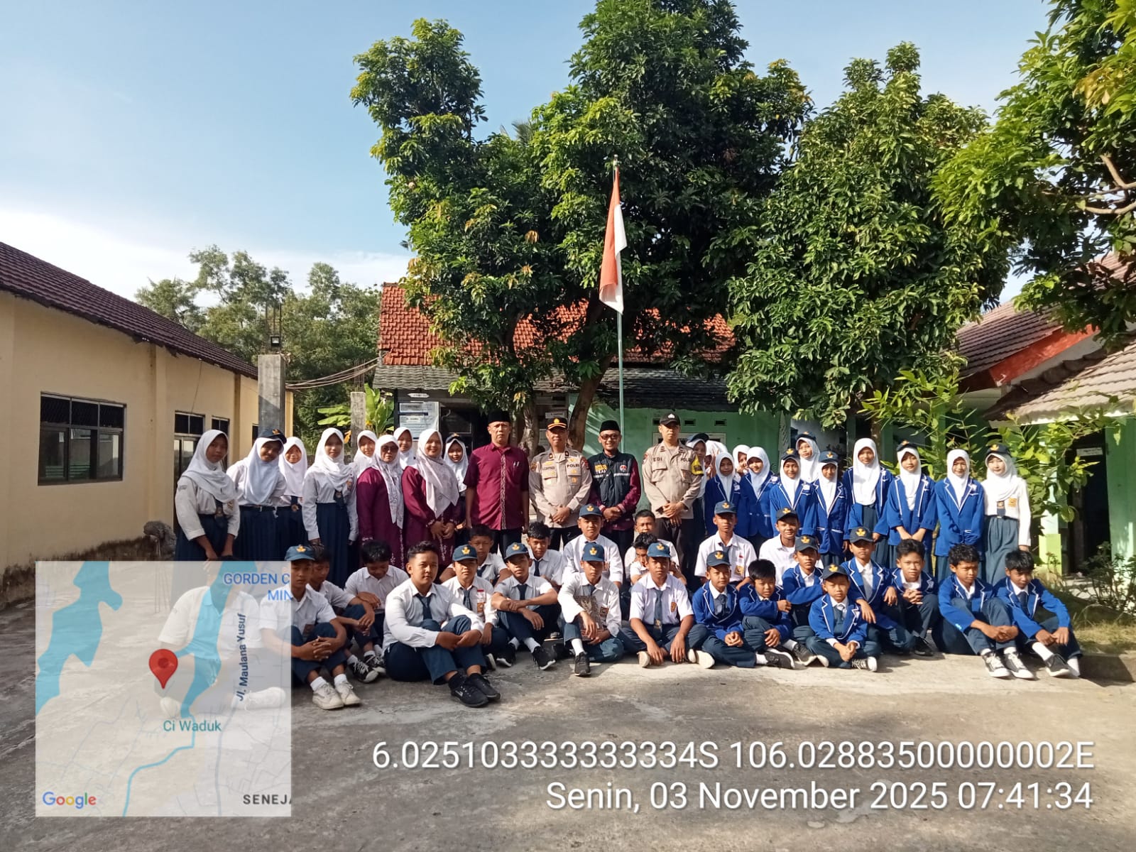 Cilegon – Bhabinkamtibmas Polsek Ciwandan Dampingi Kabag SDM Polres Cilegon Polda Banten KOMPOL Entang Cahyadi Menyambangi SMP Al-A’raaf Dikelurahan Tamanbaru Kecamatan Citangkil, Menyampaikan Pesan-pesan Kamtibmas Dan Memberikan Imbauan, Senin (03/11/2025).