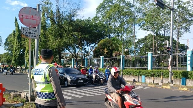 Pengaturan lalu lintas dimulai sejak pukul 06.00 WIB, dengan menempatkan personel di titik-titik strategis di sekitar simpang. Petugas membantu menyeberangkan pejalan kaki, mengatur kendaraan yang keluar masuk dari jalan-jalan kecil, serta memberikan teguran kepada pengendara yang melanggar aturan lalu lintas.