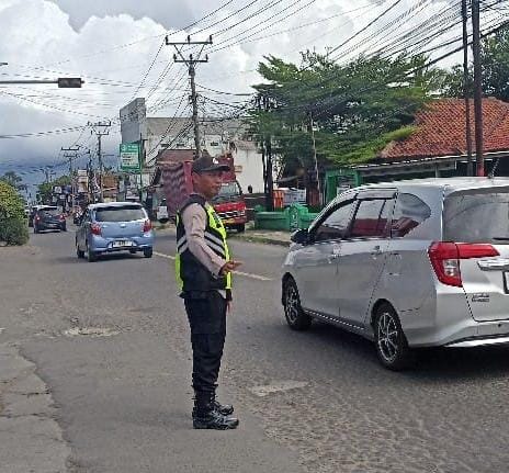 Polsek Anyar Lakukan Pengaturan Lalu Lintas Pada Jalur Anyar - Cinangka Urai Kendaraan