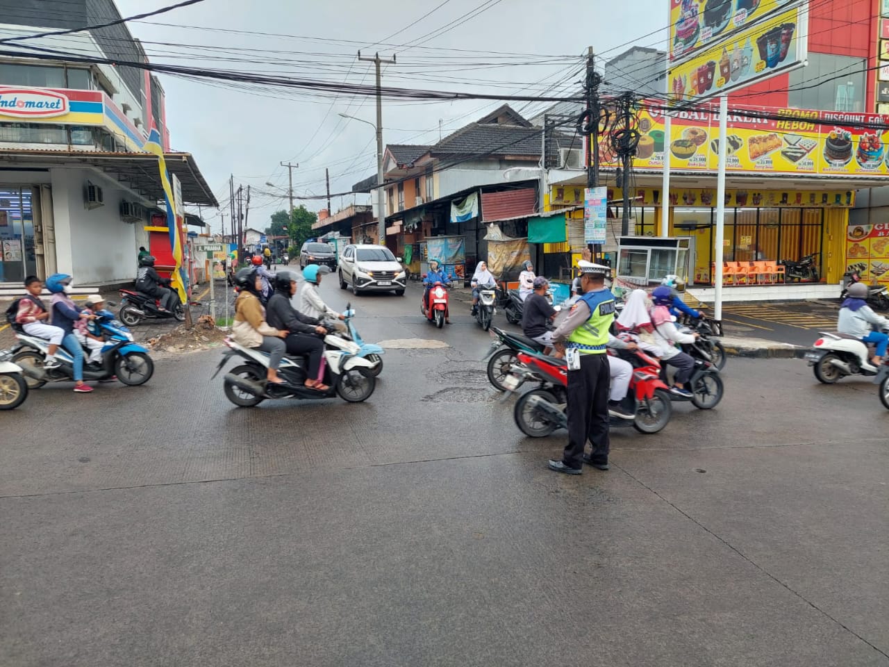 Unit Lantas Polsek Cilegon Polres Cilegon dan Dishub kota cilegon urai kemacetan lalin.