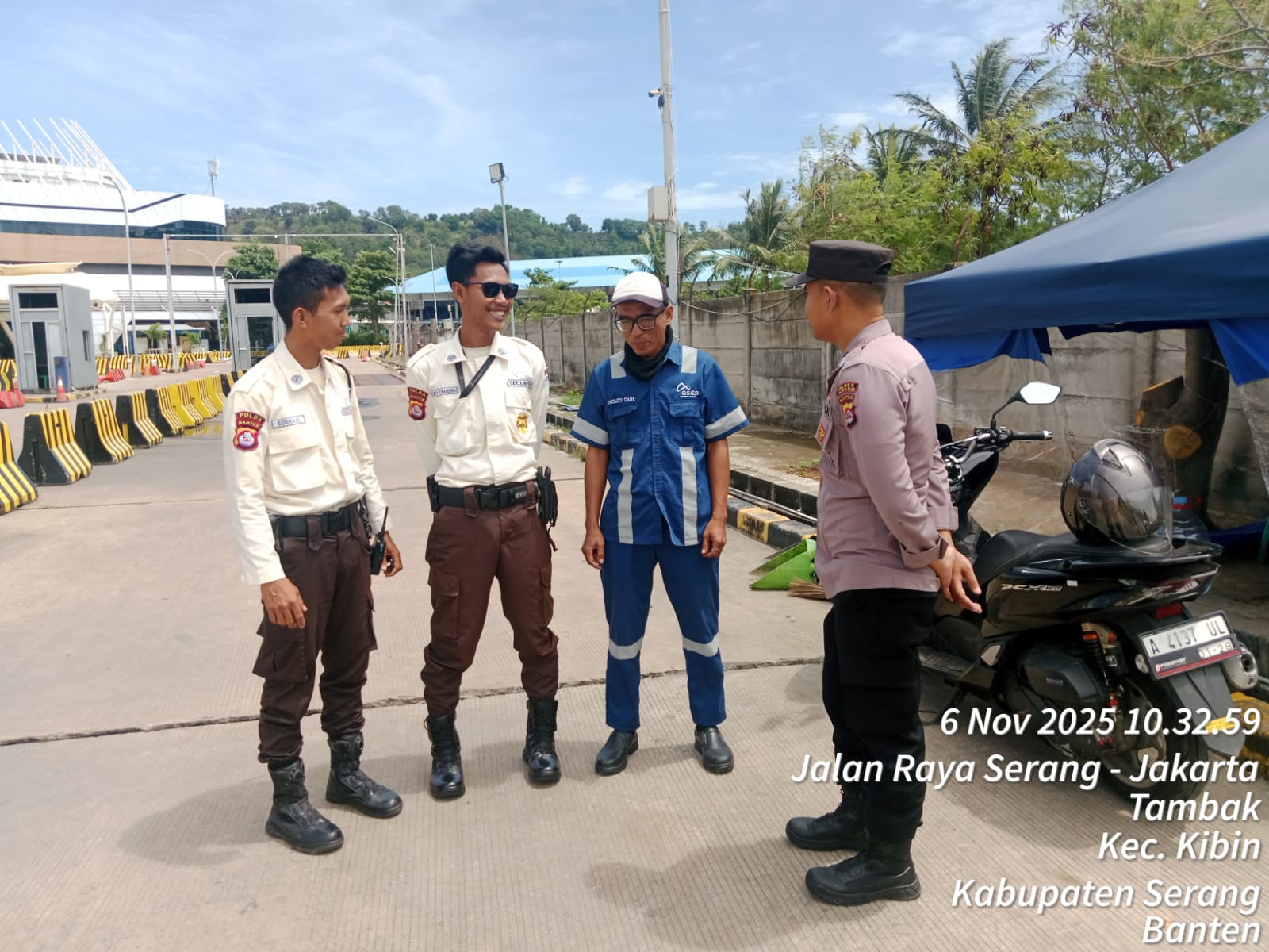 Kapolres Cilegon Polda Banten AKBP Martua Raja Taripar Laut Silitonga Melalui Kapolsek Kskp Polres Cilegon Polda Banten AKP Gusti Almasri P mengatakan Bhabinkamtimbmas Polsek Kskp Rutin menyambangi anggota Scurity dan memberikan himbauan agar para anggota Scurity bisa melaksanakan tugas menjaga keamanan di Kawasan Pelabuhan Merak.