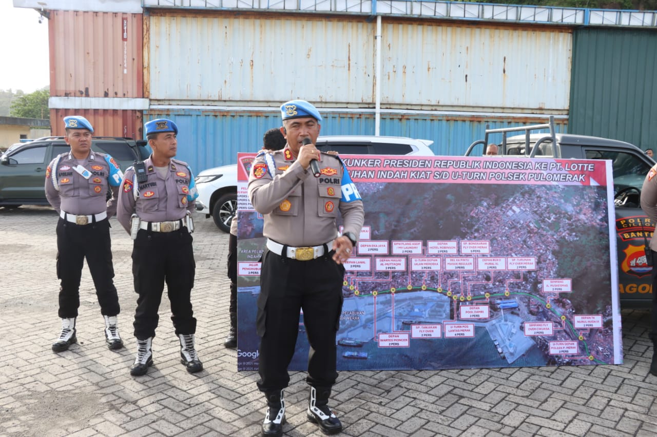 Cilegon – Jajaran Polres Cilegon Polda Banten melaksanakan pengamanan kegiatan kenegaraan berskala nasional dalam rangka kunjungan kerja Presiden Republik Indonesia, H. Prabowo Subianto, yang meresmikan PT. Lotte Chemical Indonesia di Kawasan Industri Merak, Kamis (6/11/2025).