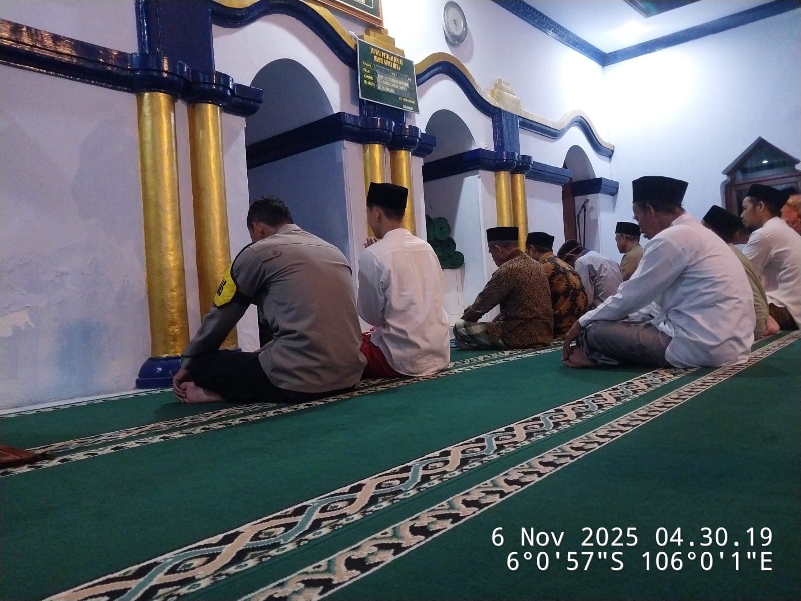 Cilegon – Bhabinkamtibmas Polsek Ciwandan Polres Cilegon Polda Banten menggelar kegiatan Pembinaan Rohani dengan Sholat subuh keliling di Masjid Yang ada Di Daerah hukum Polsek Ciwandan Polres Cilegon Polda Banten, Kamis (06/11/2025).