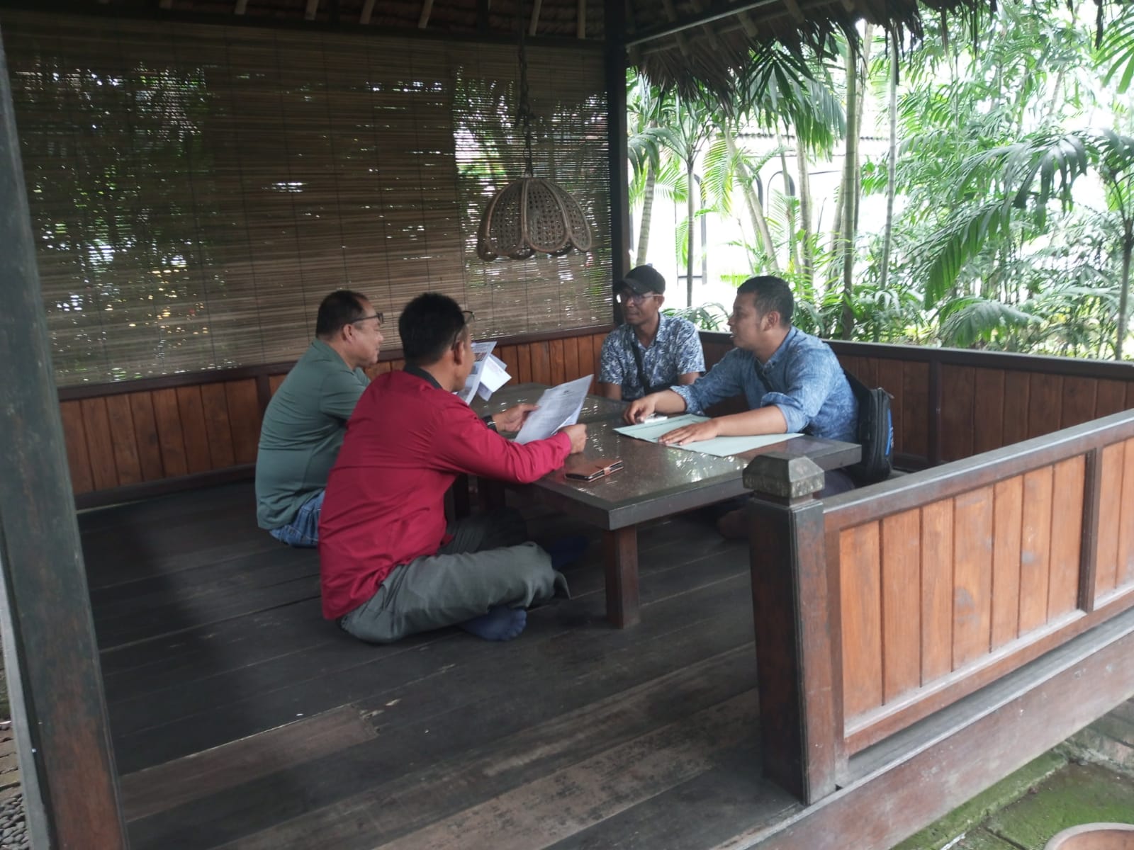 Personil sat intelkam melakukan koordinasi dengan tokoh pemuda kec. Anyar kabupaten serang.