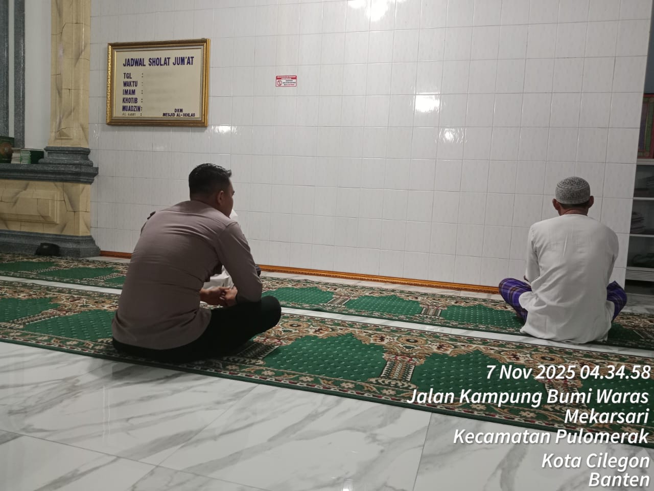 “Dalam kegiatan tersebut, Personil Polsek Kp Polres Cilegon Polda Banten turut berbaur dengan jemaah masjid dalam melaksanakan shalat subuh berjamaah. Setelah itu, dilakukan dialog interaktif antara petugas kepolisian dan masyarakat untuk mendengarkan aspirasi serta memperoleh masukan terkait dengan situasi keamanan dan ketertiban di lingkungan sekitar,” tambah Kapolsek.