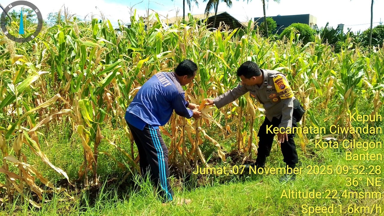 Cilegon - Dalam rangka memberikan dukungan kepada Pemerintah terkait Ketahanan pangan, Bhabinkamtibmas Ciwandan Polres Cilegon Polda Banten melaksanakan Implementasikan Program Asta Cita Presiden dengan fokus pada sektor Pertanian tanaman Jagung dilingkungan Binaan, Jum’at (07/11/2025).