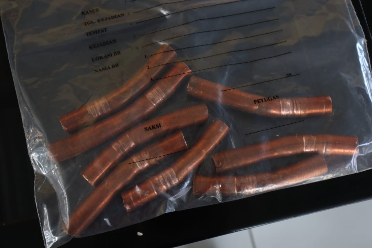 Dari tangan pelaku, petugas mengamankan dua karung berisi pipa tembaga, dua pipa besi, sebuah senter, serta satu unit sepeda motor Honda Vario 150i tanpa nomor polisi dan surat-surat.