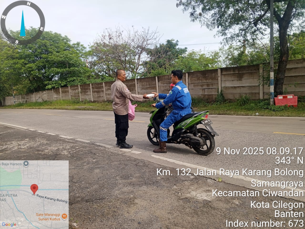 Personil Polsek Ciwandan Berikan Makanan Kepada Pengguna Jalan