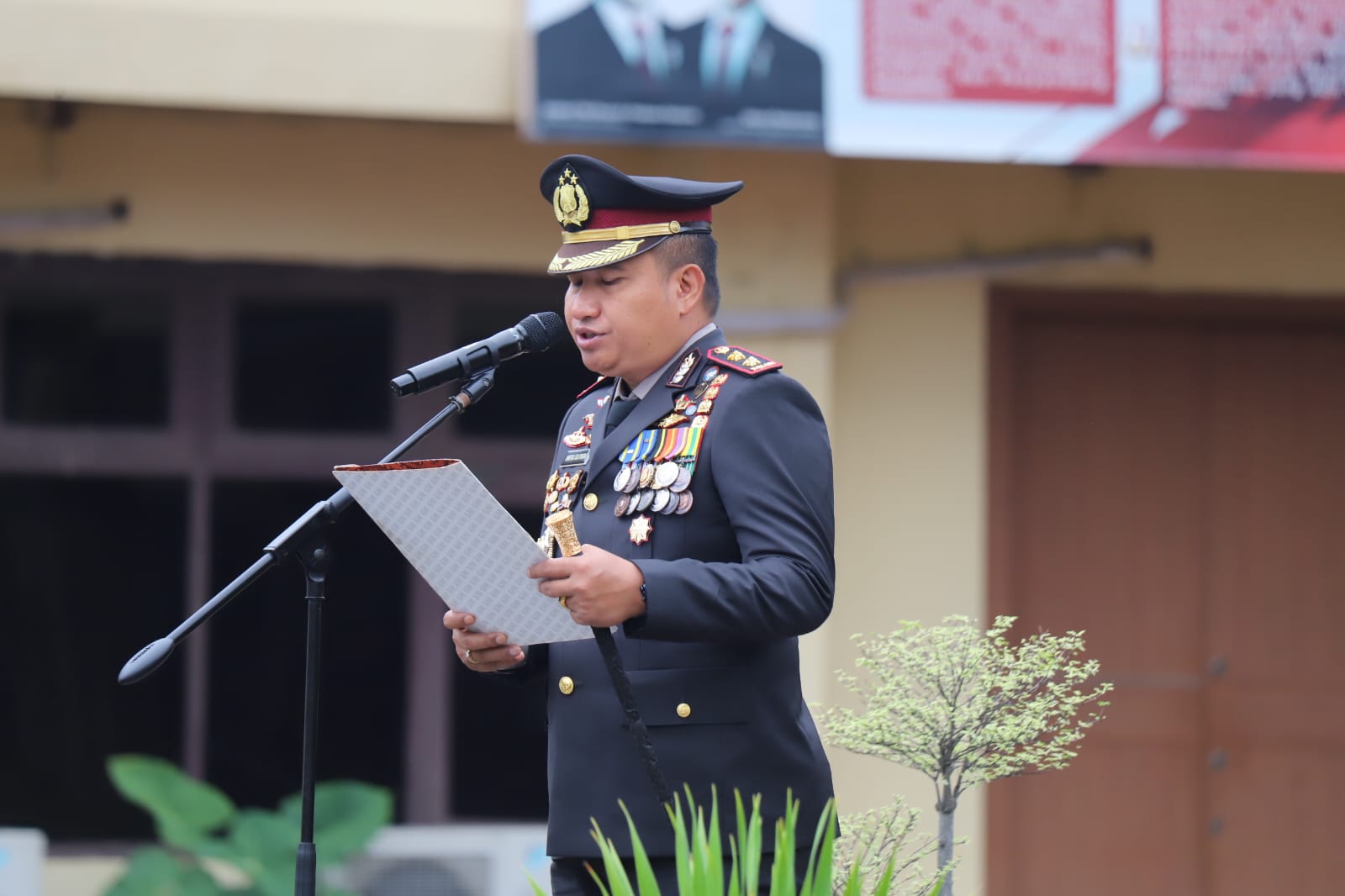Upacara bendera ini diikuti oleh 1 pleton pejabat utama Polres Cilegon, satu pleton perwira, satu pleton gabungan staf, satu, satu pleton polisi lalu lintas, stu pleton gabungan Sat Intelkam, Sat Reskrim, Sat Narkoba dan Sat Tahti, serta satu pleton ASN Polres Cilegon.
