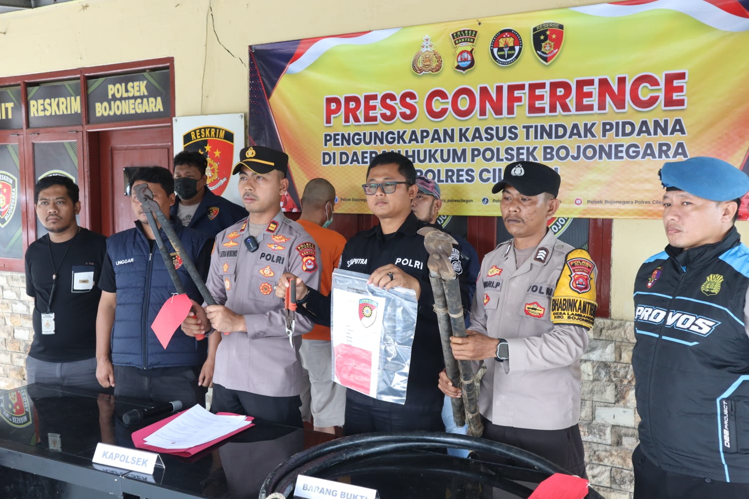 press conference yang digelar di Aula Polsek Bojonegara, Senin