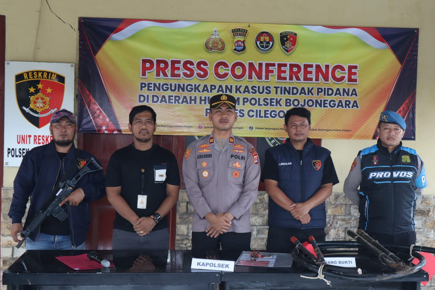 press conference yang digelar di Aula Polsek Bojonegara, Senin