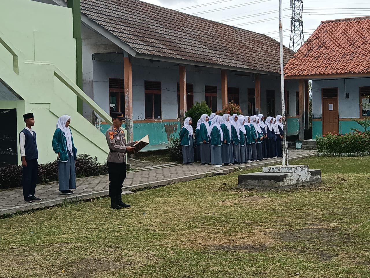 Babinkamtibmas Kelurahan Pabean, Aipda Anton Sudrajat, mendampingi Kanit Pam Obvit Polres Cilegon dalam pelaksanaan upacara bendera di Madrasah Aliyah yang berlokasi di lingkungan Karang Tengah, Kelurahan Pabean, Kecamatan Purwakarta, Kota Cilegon