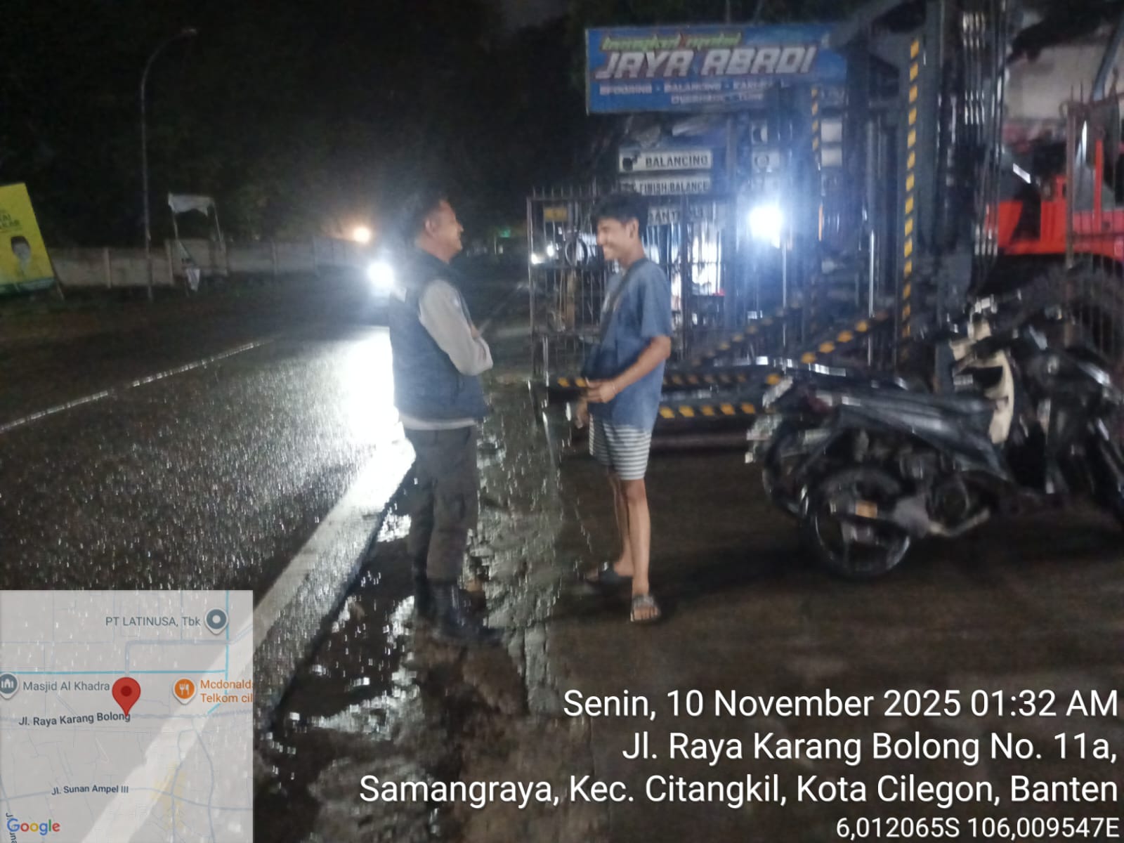 Cilegon - Upaya mengantisipasi aksi kejahatan pada daerah binaan dan memberikan rasa aman dan nyaman kepada warga binaan, Bhabinkamtibmas Polsek Ciwandan Polres Cilegon Polda Banten sambangi warga pada malam hari, Swnin (10/11/2025).