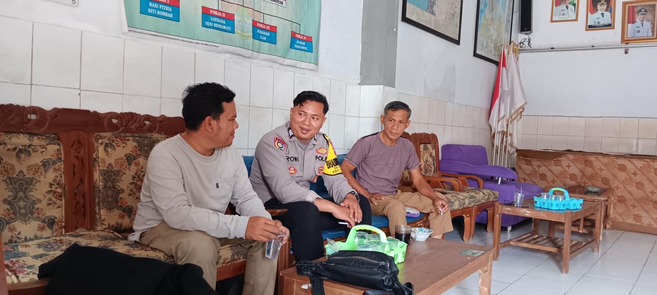 *CILEGON* dalam Rangka Mengantisipasi Gktm di wilayah Personil Bhabinkamtibmas Cinangka melakukan patroli Dialogis dengan Kepala Desa dan warga dan Menanyakan situasi Kamtibmas di wilayah dalam Rangka Menjaga Harkamtibmas di Desa Binaannya Kecamatan Cinangka Kab. Serang. Selasa (11/11/2025).
