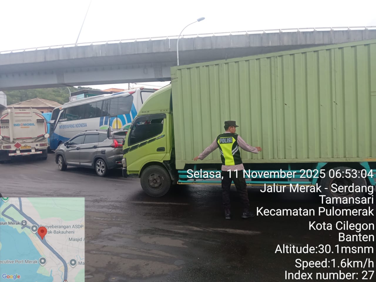 KSKP Merak Polres Cilegon Berikan Pelayanan Maksimal Lewat Pengaturan Antrian Kendaraan