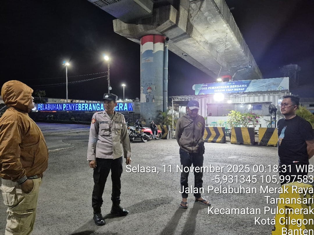 Cilegon - Personil Polsek Kskp Merak Polres Cilegon melaksanakan patroli di kawasan pelabuhan merak memberikan rasa aman dan damai, Selasa (11/11/2025)