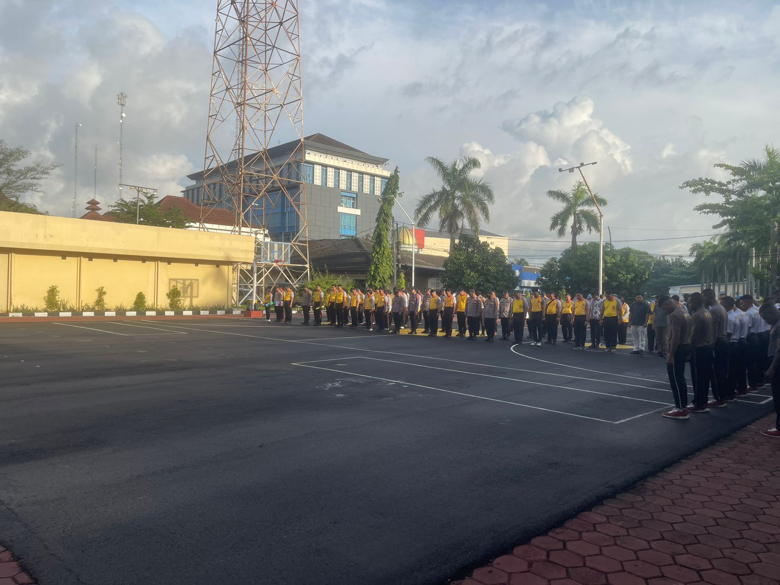 ANGGOTA POLRI RUTIN LAKUKAN APEL PAGI SEBELUM MELAKSANAKAN KEGIATAN KEPOLISIAN