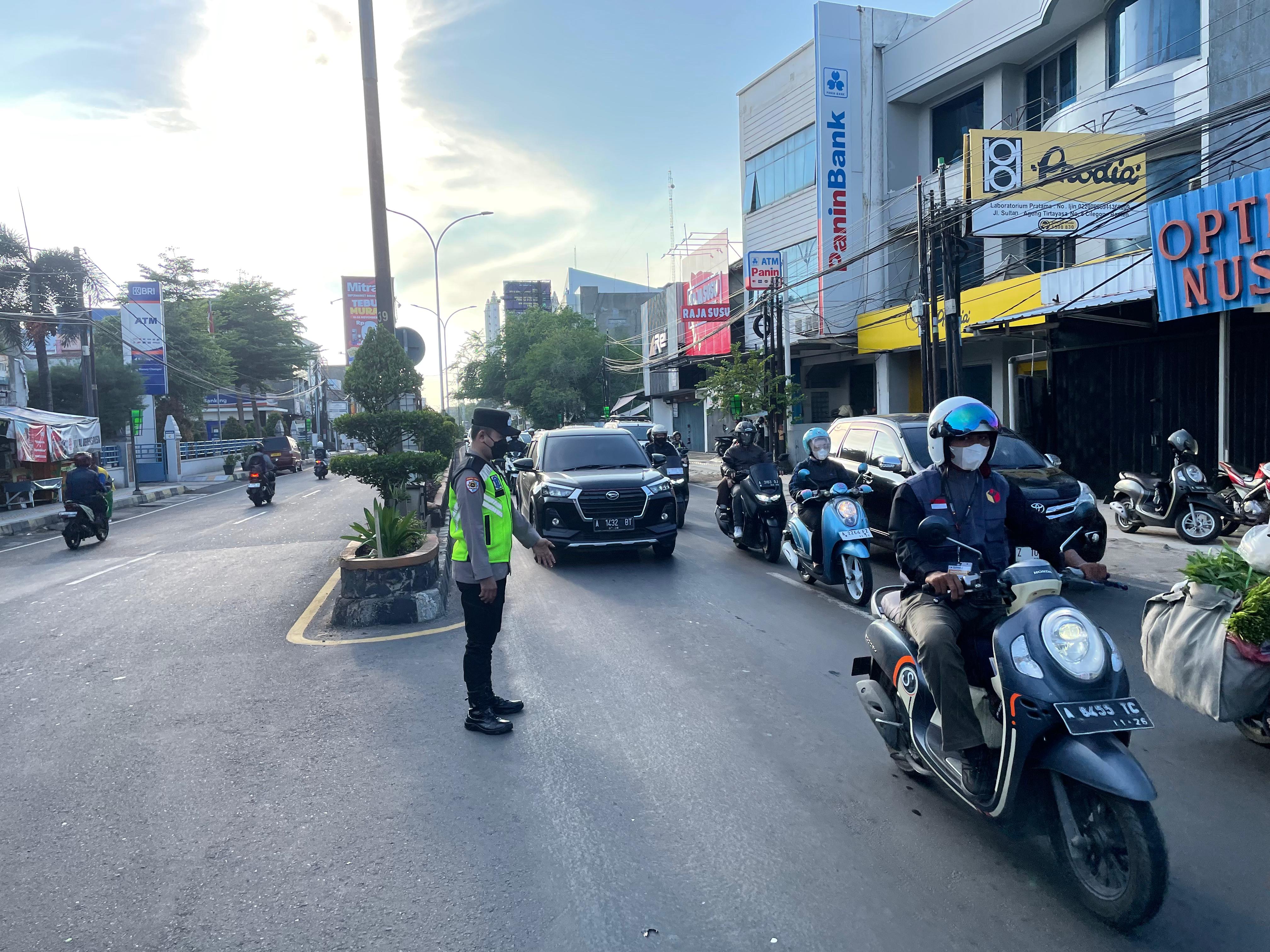 Kegiatan pengaturan arus lalu lintas yang dilaksanakan oleh personil Polres Cilegon merupakan kebijakan Kapolres Cilegon sebagai wujud pelayanan Polri kepada masyarakat yang akan beraktifitas pagi hari guna mengantisipasi terjadinya kemacetan dan terciptanya kamseltibcar lantas di wilayah Hukum Polres Cilegon Banten.