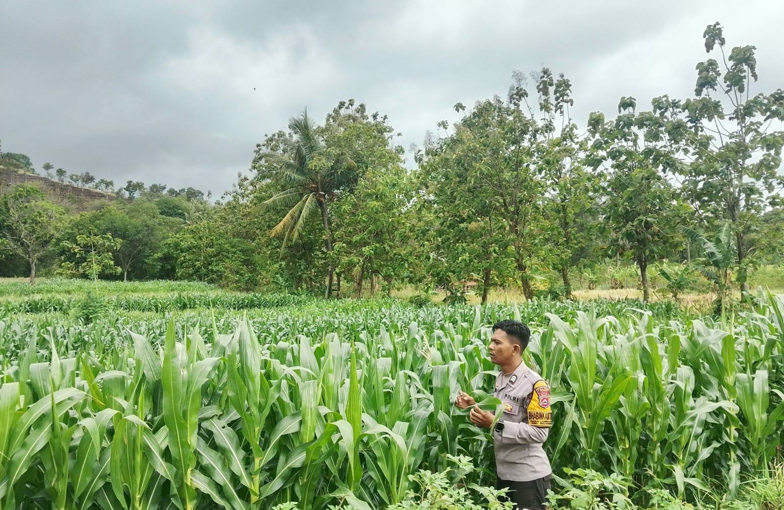 Kegiatan berlangsung lancar dan diakhiri dengan diskusi ringan antara petani dan Bhabinkamtibmas mengenai cara mengantisipasi gangguan terhadap tanaman jagung serta rencana panen ke depan.