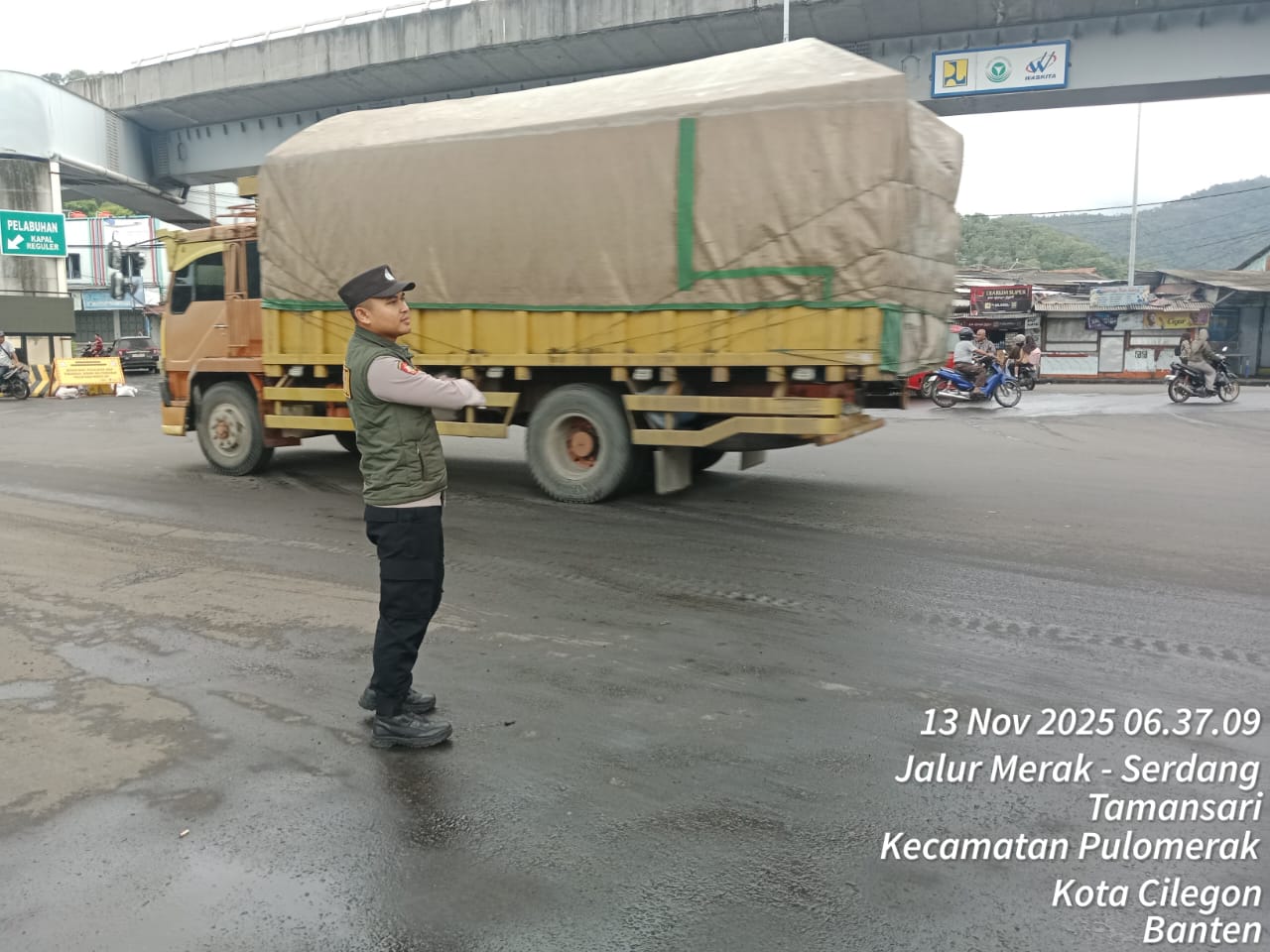 Cilegon - Dalam rangka peningkatan pelayanan prima kepada masyarakat, Kskp Merak Polres Cilegon Polda Banten melaksanakan pengaturan antrian R4 yang akan masuk ke Kapal Ferry di Pelabuhan Merak, Kamis (13/11/2025).