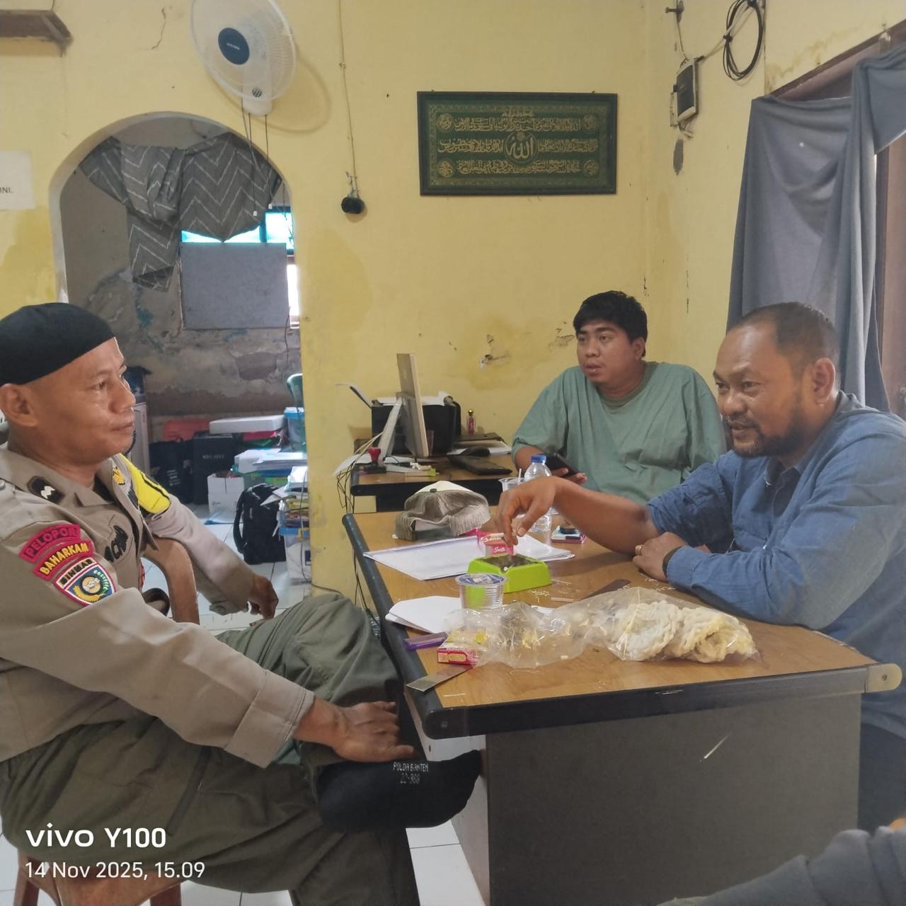 *CILEGON* dalam Rangka Mengantisipasi Gktm di wilayah Personil Bhabinkamtibmas Cinangka melakukan patroli Dialogis dengan Kepala Desa dan warga dan Menanyakan situasi Kamtibmas di wilayah dalam Rangka Menjaga Harkamtibmas di Desa Binaannya Kecamatan Cinangka Kab. Serang. Jumat.(14/11/2025).
