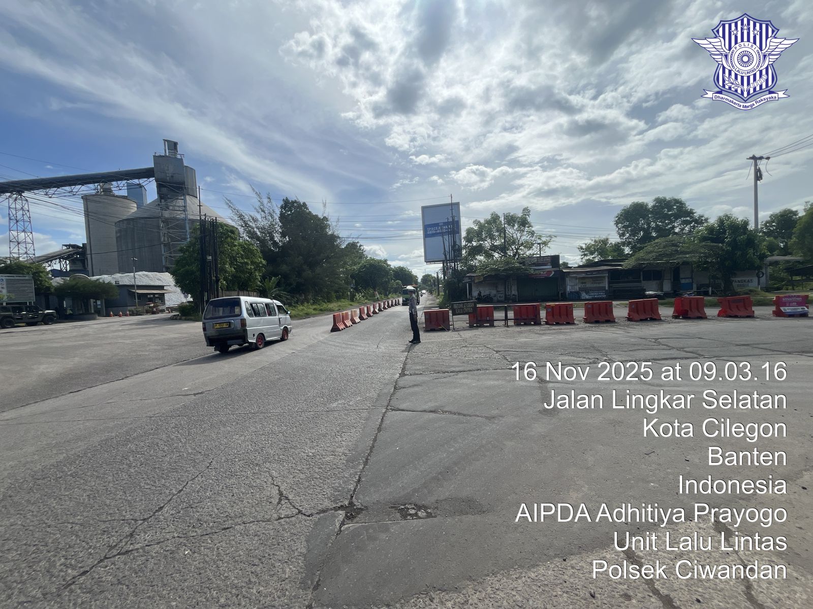Cilegon - Personil Unit Lantas Polsek Ciwandan Polres Cilegon Polda Banten melaksanakan kegiatan monitoring jalur wisata di depan Pos Lantas JLS Ciwandan, Minggu, (16/11/2025).