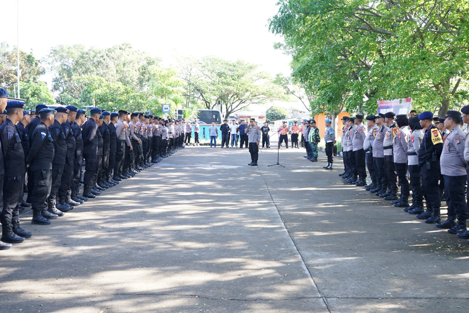Kapolres Cilegon, AKBP Dr. Martua Raja Taripar Laut Silitonga, turun langsung memimpin pengamanan bersama Pejabat Utama Polres serta Kapolsek jajaran. Pengamanan ini dilaksanakan berdasarkan Surat Perintah Kapolres Cilegon Nomor Sprin: 5333 / XI / PAM.3.3 / 2025 tanggal 15 November 2025.