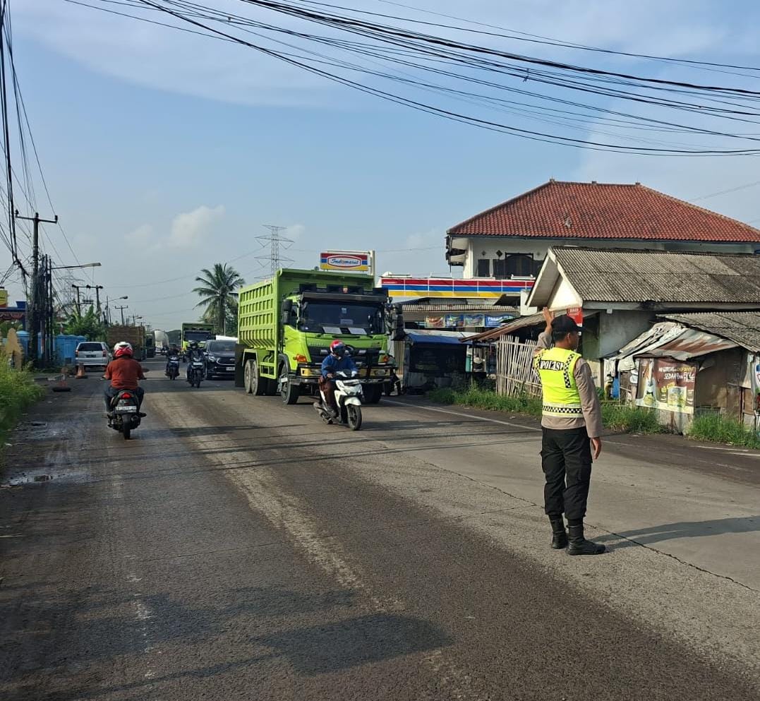 Strong Poin Sore, Bripka Susilo Polsek Bojonegara Laksanakan Pengaturan lalu lintas di Bojonegara
