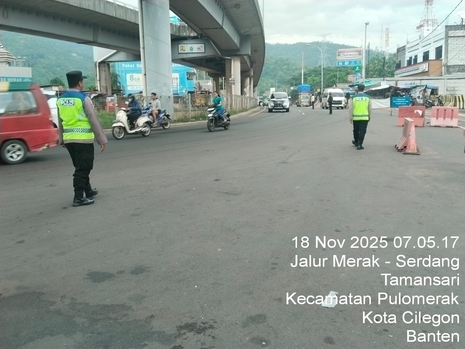 Cilegon - Dalam rangka peningkatan pelayanan prima kepada masyarakat, Kskp Merak Polres Cilegon Polda Banten melaksanakan pengaturan antrian R4 yang akan masuk ke Kapal Ferry di Pelabuhan Merak, Selasa (18/11/2025).